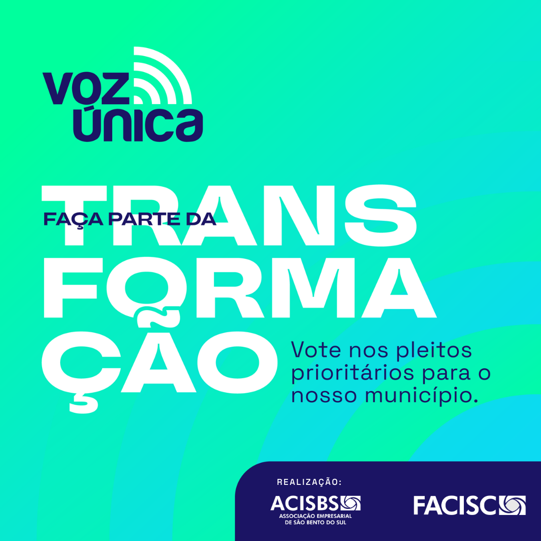 Associado, queremos te ouvir. Está aberta a votação dos pleitos prioritários do Voz Única, que irão direcionar as demandas defendidas pela FACISC e pela nossa ACISBS.