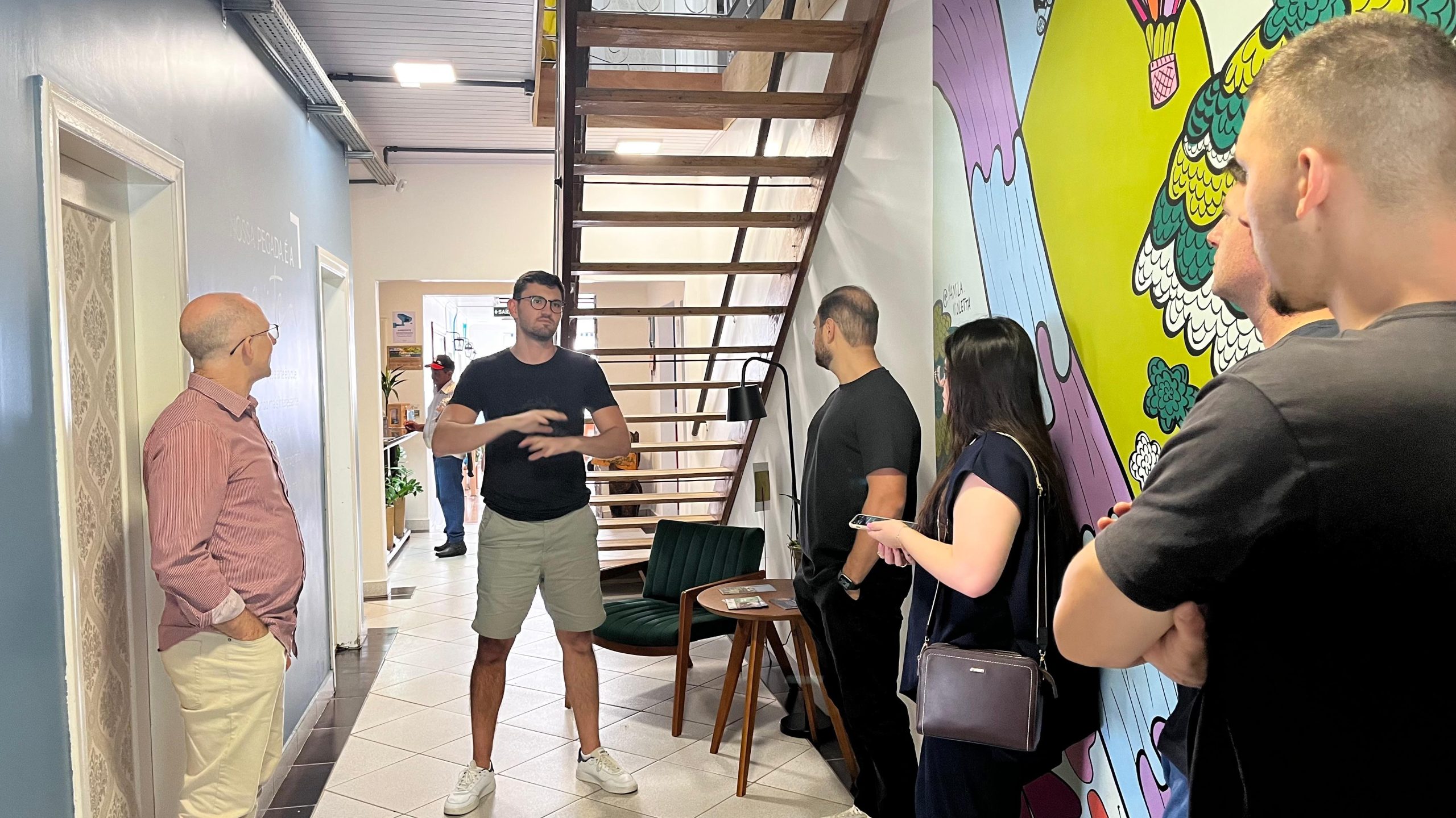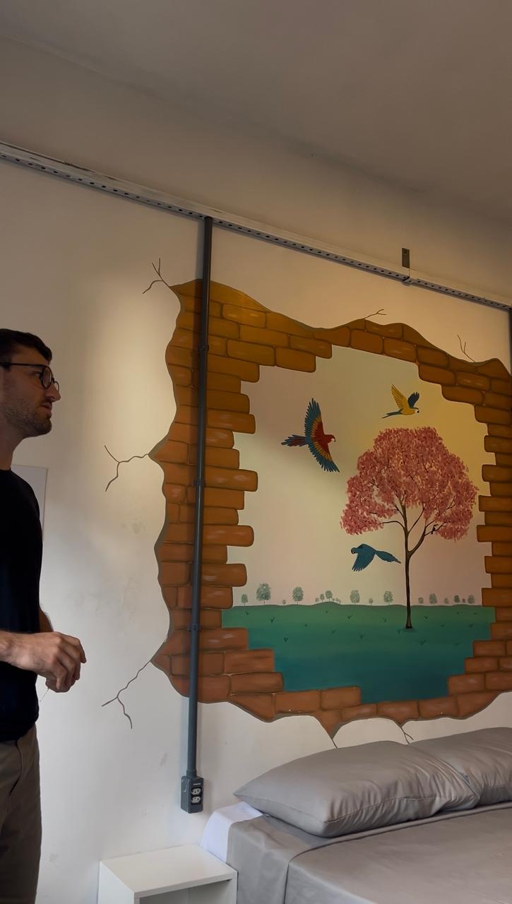 Os participantes conheceram as instalações do local, incluindo os quartos, a cozinha compartilhada e as áreas de convivência. Um dos pontos que mais chamou a atenção foi a identidade visual do espaço, marcada por pinturas artísticas que tornam o ambiente mais criativo, acolhedor e diferenciado.