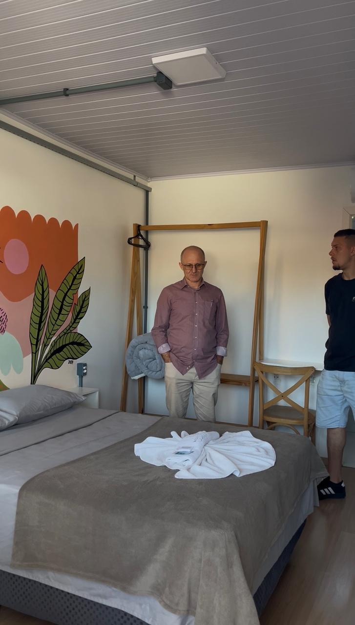 Durante a visita, o proprietário Beneth Torquato compartilhou a trajetória do Hostel, desde o momento em que assumiu o espaço até as transformações realizadas ao longo do tempo. Ele destacou os desafios enfrentados no início, as melhorias implementadas e a proposta de oferecer um ambiente acolhedor e acessível para os visitantes da cidade.