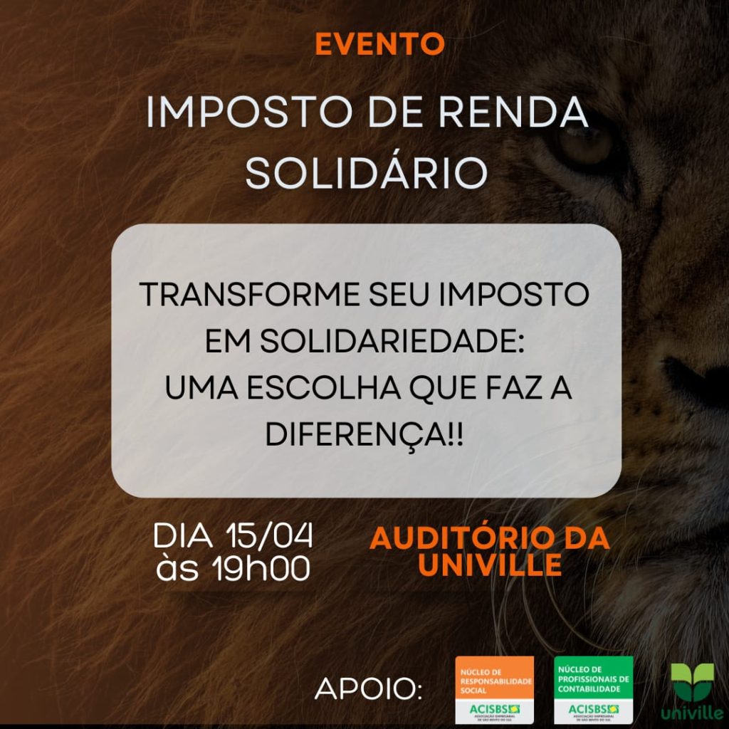 Junte-se a nós para entender como uma parte do seu imposto pode voltar diretamente para fundações e iniciativas sociais em São Bento do Sul. O evento é realizado pela Univille, em parceria com os Núcleos de Responsabilidade Social e Profissionais da Contabilidade da Acisbs. Participe e faça a diferença!